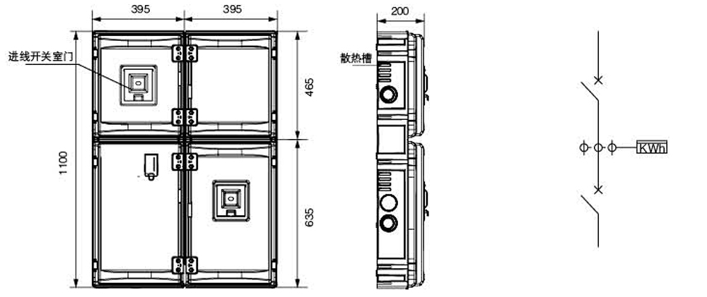 在箱體柜門、背板的下端及上端,頂板、柜門和背板之間留有通風(fēng)組件,借助電氣元件產(chǎn)生的熱量,可對(duì)箱體內(nèi)空間做去濕處理,既可防止箱體內(nèi)金屬件的銹蝕,也可防止漏電流發(fā)生。