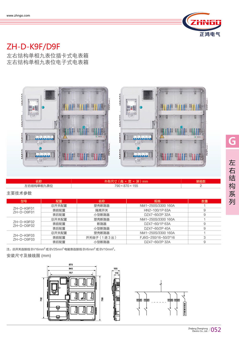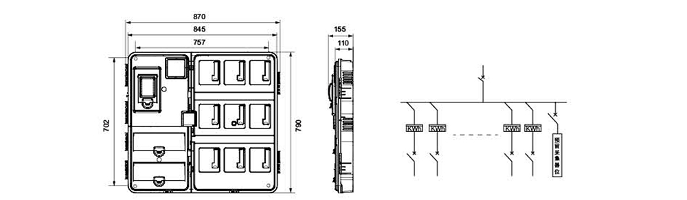 左右結(jié)構(gòu)單相九表位插卡式電表箱