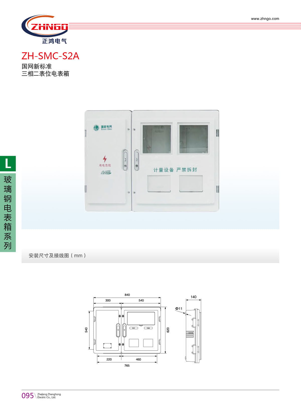 浙江正鴻電氣有限公司研發(fā)生產(chǎn)的 SMC 電表箱采用增強型不飽和聚碳樹脂玻璃纖維增強塑料,經(jīng)過高溫高壓一次性成型,具有箱體堅固、永不變形、耐腐蝕、抗老化、長壽命、易于安裝、操作簡便等特點??蛇M行多戶任意組合,亦可單戶或跨戶安裝,施工方便,走線隱蔽,本產(chǎn)品采用嚴格的防雨設(shè)計,適用于戶外安裝,確保電度表安全運行。使用壽命室內(nèi)四十年以上,室外三十年以上。