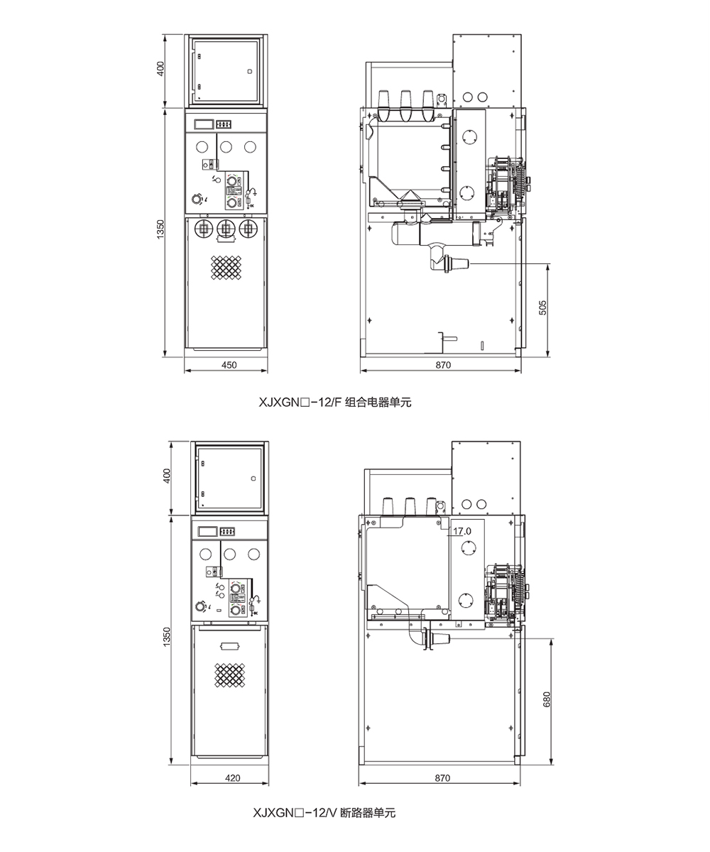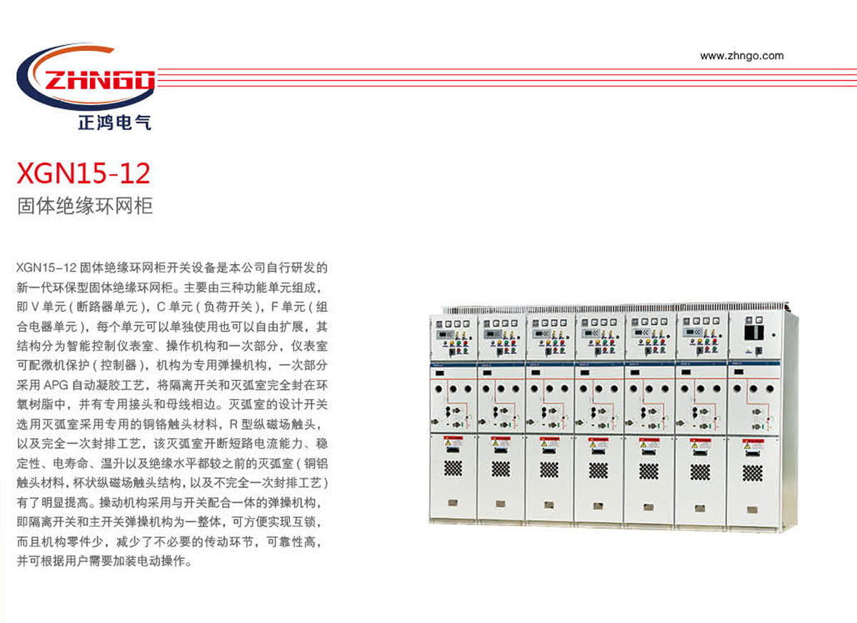 XJXGN □ -12(CVF) 固體絕緣環(huán)網(wǎng)柜開關(guān)設(shè)備是本公司自行研發(fā)的新一代環(huán)保型固體絕緣環(huán)網(wǎng)柜。主要由三種功能單元組成,即 V 單元 ( 斷路器單元 ),C 單元 ( 負(fù)荷開關(guān) ),F(xiàn) 單元 ( 組合電器單元 ),每個單元可以單獨(dú)使用也可以自由擴(kuò)展,其結(jié)構(gòu)分為智能控制儀表室、操作機(jī)構(gòu)和一次部分,儀表室可配微機(jī)保護(hù) ( 控制器 ),機(jī)構(gòu)為專用彈操機(jī)構(gòu),一次部分采用 APG 自動凝膠工藝,將隔離開關(guān)和滅弧室完全封在環(huán)氧樹脂中,并有專用接頭和母線相邊。滅弧室的設(shè)計開關(guān)選用滅弧室采用專用的銅鉻觸頭材料,R 型縱磁場觸頭,以及完全一次封排工藝,該滅弧室開斷短路電流能力、穩(wěn)定性、電壽命、溫升以及絕緣水平都較之前的滅弧室 ( 銅鋁觸頭材料,杯狀縱磁場觸頭結(jié)構(gòu),以及不完全一次封排工藝 ) 有了明顯提高。操動機(jī)構(gòu)采用與開關(guān)配合一體的彈操機(jī)構(gòu),即隔離開關(guān)和主開關(guān)彈操機(jī)構(gòu)為一整體,可方便實現(xiàn)互鎖,而且機(jī)構(gòu)零件少,減少了不必要的傳動環(huán)節(jié),可靠性高,并可根據(jù)用戶需要加裝電動操作。