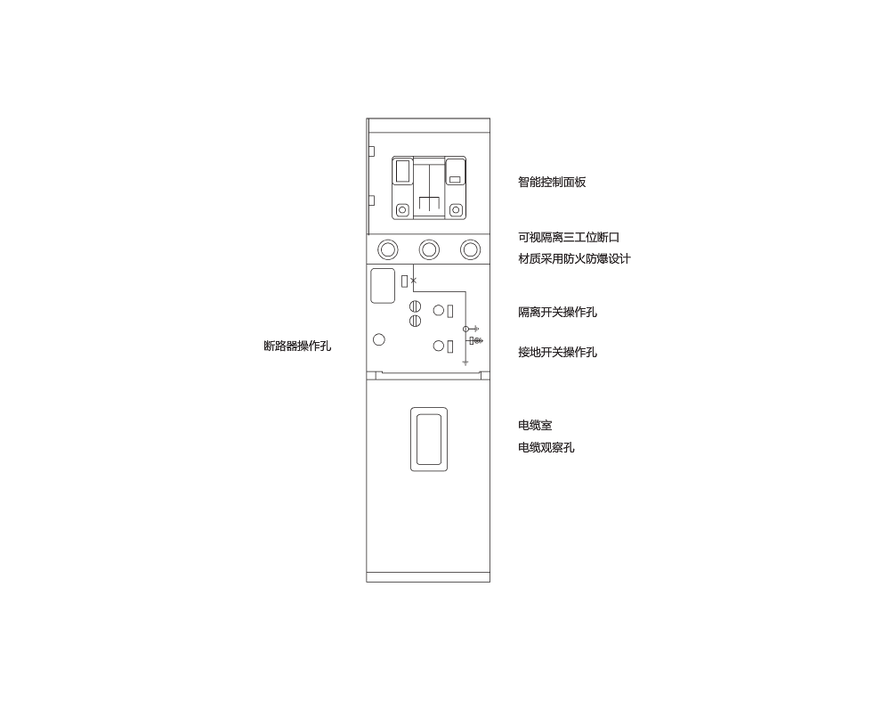 除面板集成的模擬分合位置顯示外,通過柜體前方的可視觀察窗可直觀的觀察到內(nèi)部隔離刀的合、分及接地觸頭的狀態(tài)。
